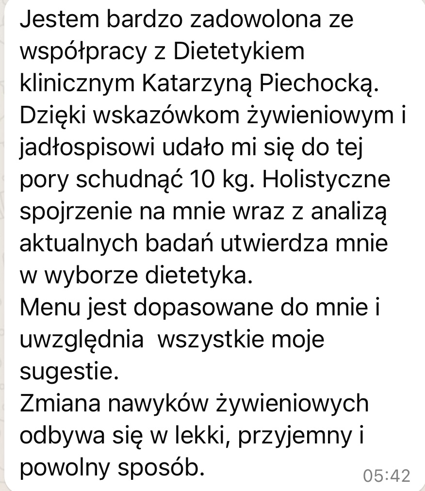 Nazywam się Katarzyna Piechocka i jestem dyplomowaną dietetyczką, specjalizującą się w dietetyce klinicznej. Aktualnie rozwijam swoją wiedzę na studiach magisterskich z dietetyki, realizując plany na dalszy rozwój zawodowy.